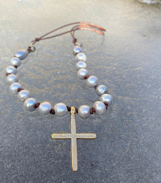 Simple Ethiopian Cross Pearl Necklace