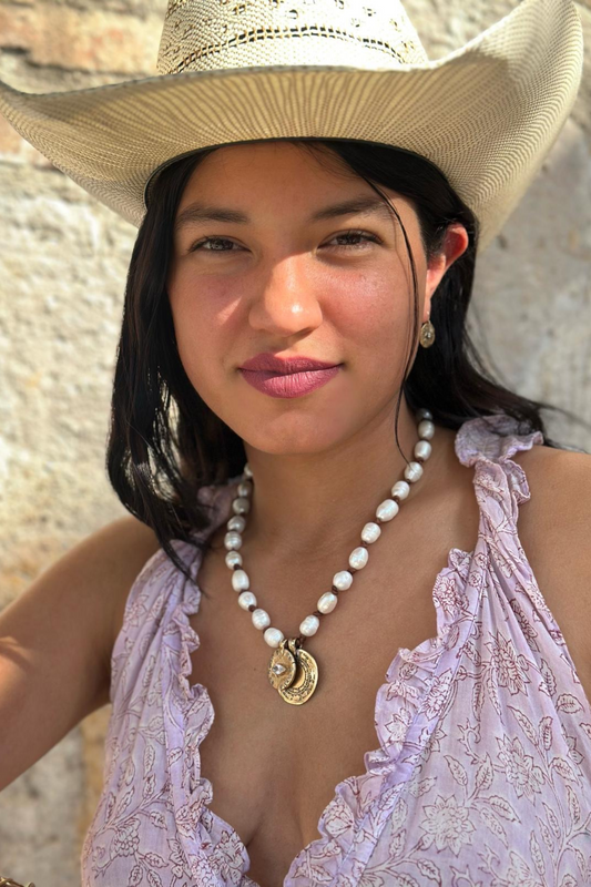 Sold outDouble Coin Evil Eye Pearl Necklace