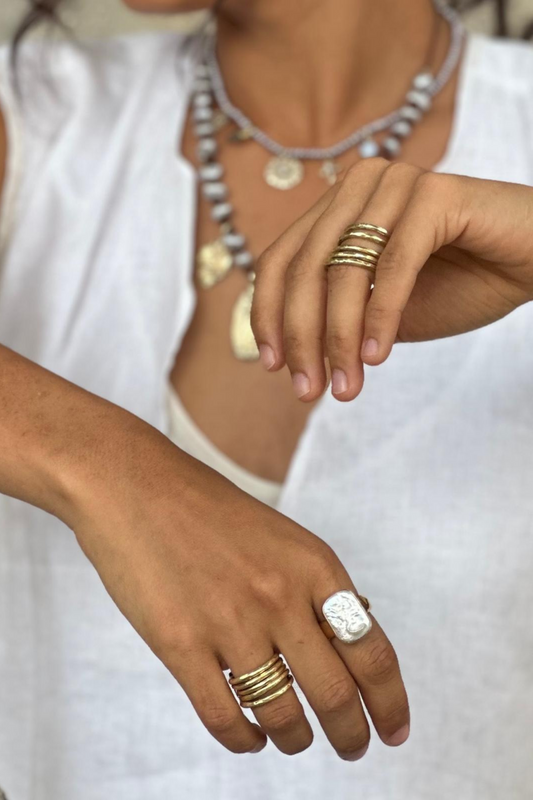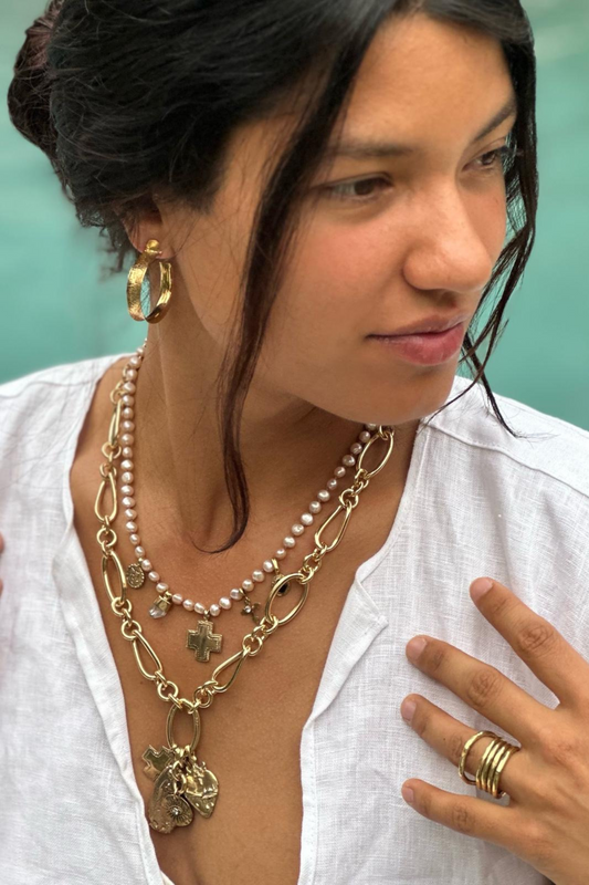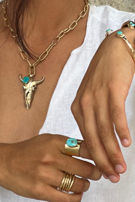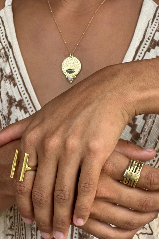 Our jewelry is crafted from high-quality materials, including triple 18K electroplated gold over brass, bronze and sterling silver. Our brand emphasizes durability and elegance, ensuring that each piece is both beautiful and long-lasting.